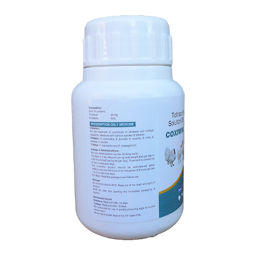 For oral administration through the drinking water. The dose is 7mg toltrazurii per kg body weight (bw) per day (= 0.28ml (product) per kg bw per day). Treatment is carried out on two consecutive days. The medicinal product should be administered either continuously over 24 hours or for one period of 8 hours per day for 2 consecutive days.
