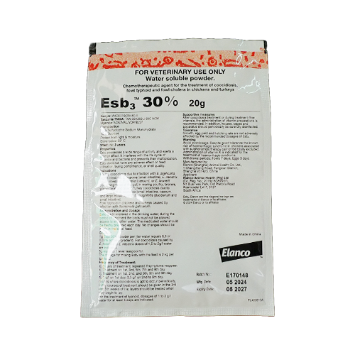Esb 3 is administered in the drinking water; during the period of treatment the birds must not be allowed access to any other water. The medicated water should be freshly prepared each day. No changes should be made in the birds’ feed.