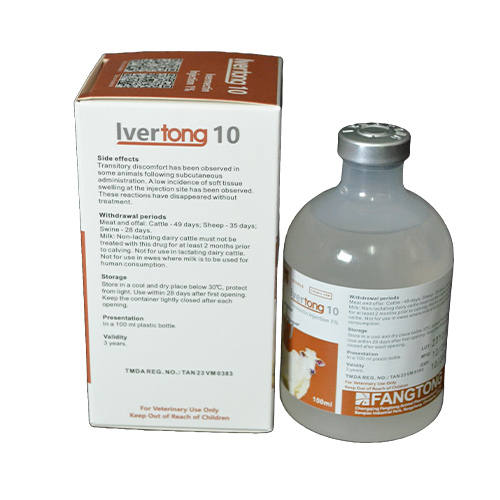 Ivertong 10 is indicated for the treatment and control of ivermectine sensitive internal and external parasites of cattle, sheep and swine.