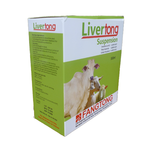 For treatment and control of round, tape worms, liver fluke and cobalt deficiency. Liver tong Suspension is highly effective at a single dose rate in buffaloes, cattle’s, sheep and goats against: