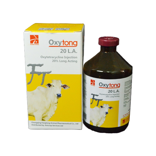 Oxytong 20 L.A is a sterile injectable solution eah ml contains Oxytetracycline 200mg. Excipients; Mgnesium Oxide, Sodium Formaldehyde Sulfoxylate, Ethanolamine, 2-pyrrolidone, Propylene Glycol, Water for injections q.s to 1ml.