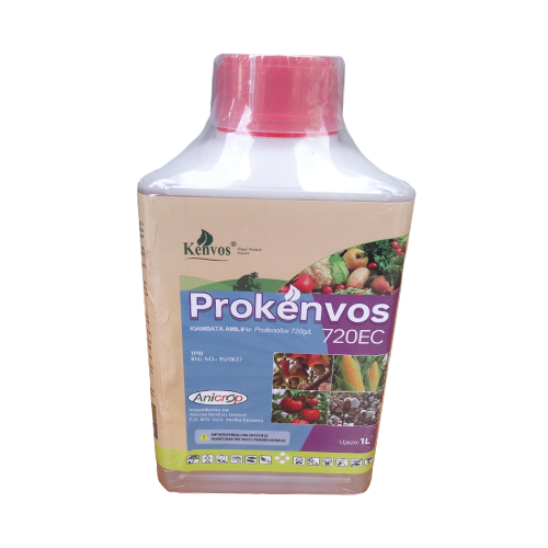 PROKENVOS 720 EC (Profenofos 720g/L) is an active broad spectrum herbicide against plant pests. It works by contact with the food path of the target pests. It is used to control pests that feed on coffee and vegetable crops. This herbicide penetrates quickly into the tissues of the leaves and is therefore not affected by rain after spraying.